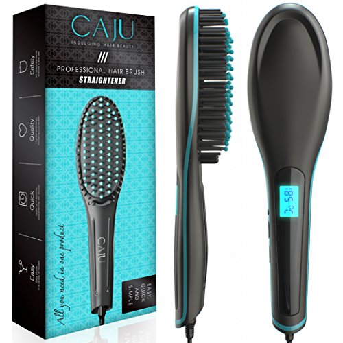 Caju Hair Straightener Ceramic Brush, Professional Electric Instant Heat Up Straightening Hot Comb for Silky Straight Hair, Frizz-Free, Top Quality Heat Resistant Coating Springy Bristles, Lcd Display