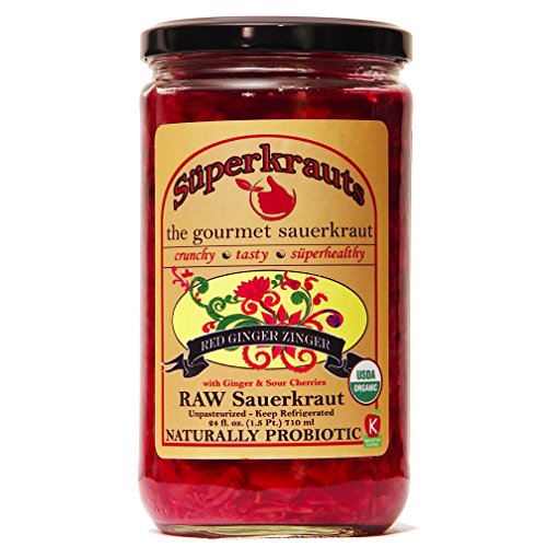 “Red Ginger” gourmet sauerkraut: organic, raw fermented, unpasteurized, probiotic, kosher, vegan and gluten free. 24 fl. oz., 16 flavors available. No shipping charges with minimum.