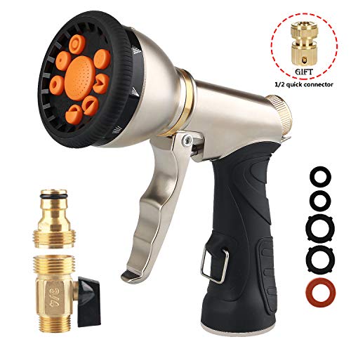 RUIDIGDN Garden Hose Nozzle Heavy Duty Metal Spray Gun Sprayer Adjustable 9 Patterns with Quick Connect Brass Hose Connector 3/4" Suitable for Watering Garden & Patio and Washing Cars