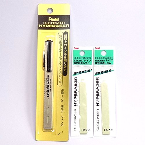 Pentel Click Hyper Eraser (ZE32-Y) + Eraser Refills(ZER4-1)×2 Packs/total 2 Refills(Japan Import) [Komainu-Dou Original Package]