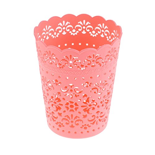 uxcell® Plastic Hollow Out Floral Design Storage Basket 14cm Height Coral Pink