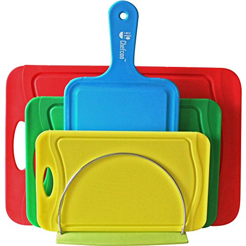 Chefcoo Cutting Board Set Stylish Color Plastic Non-Slip Kitchen Chopping Block, Juice Groove Lip for Meat & Vegetable Spills, Perfect Fit for Any Kitchen Knife, 4 Piece