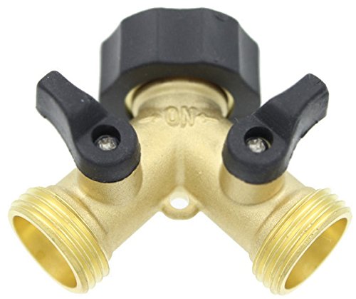Flexible Hose Connector/ Garden Hose Splitter: 2 Way by Careful Gardener - Heavy Duty Water Shut Off Valve - Solid Brass Garden Hose Faucet Adapter
