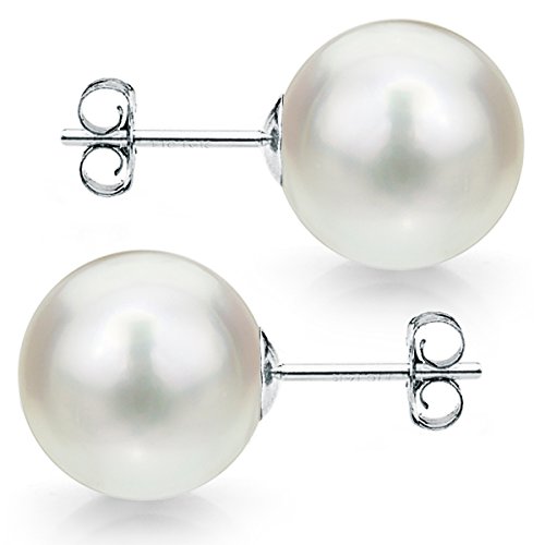 Sterling Silver White Akoya Cultured Pearl Stud Earrings AAA Quality