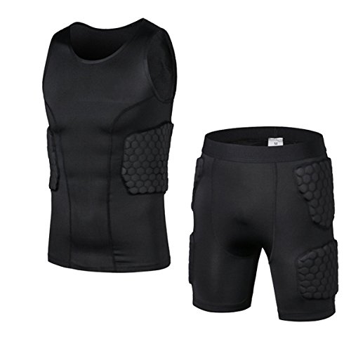Black Padded Compression Sleeveless Shirt and Short Set- Football Soccer Basketball Hockey Protective Gear Mens Clothing