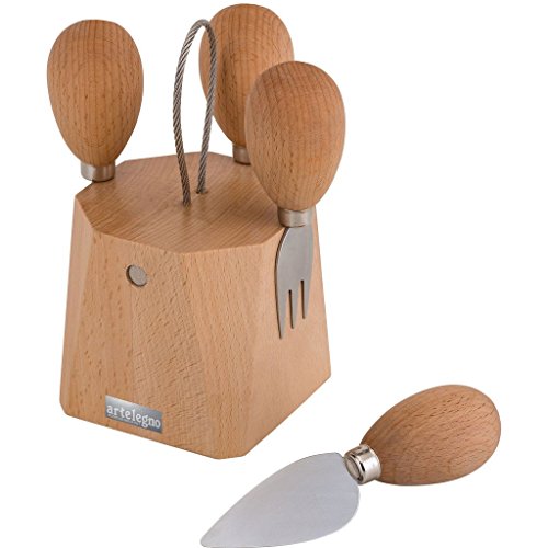 Artelegno Solid Beech Wood Magnetic Cheese Knife Block with 4 Cheese Knives, Luxurious Parma Collection by Master Italian Craftsmen, Ecofriendly, Natural Finish