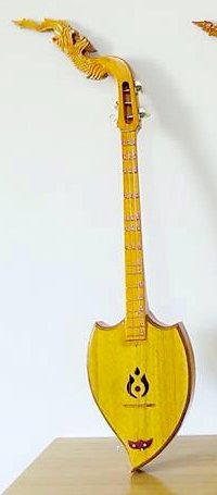 Isarn Acoustic Phin 3 Strings, Thai Lao Guitar Musical Instrument, Jackfruit Wood Traditional Thai Musical Pin 04