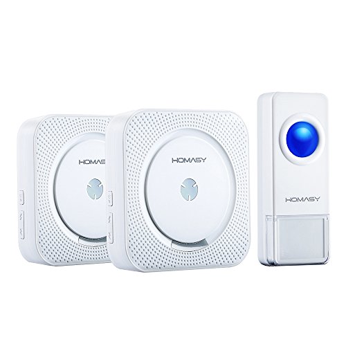 Homasy Wireless Doorbell with 1 Push Button Waterproof Transmitter and 2 Plugin Receivers Operating at over 1000-feet Range with Over 50 Chimes, No Batteries Required for Receivers, White