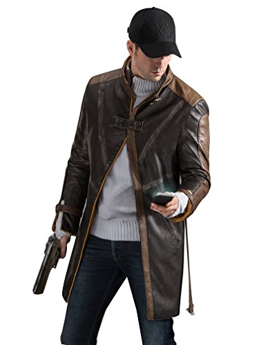 Aiden Pearce Cosplay Men's Leather Jacket Custom Made and Adjustable Hat Face Mask One Set (JACKET+MASK+HAT)