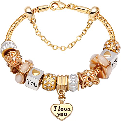 I Love You with All My Heart Gold-Tone Love Heart Bead Charm Bracelet