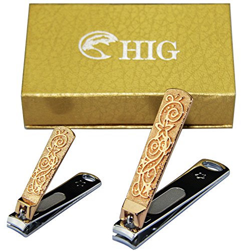 HIG Golden Nail Clipper Built-in Nail File - Sharpest Stainless Steel Nail Clippers Set & Beauty Nail cutter - Easily trim toenail and fingernail