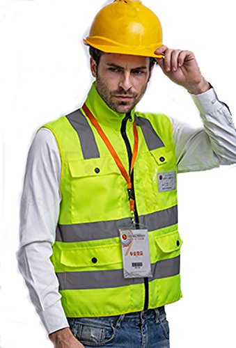 High Visibility Safety Vest Neon Green Zipper Front Breathable with Reflective Strips - Meets ANSI/ISEA Standards W/ Collar Size L