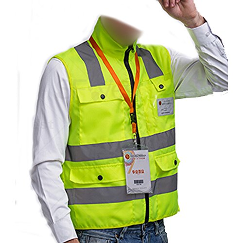 High Visibility Safety Vest 4 Multi-Functional Pockets With Zipper Front And Reflective Strips - ANSI/ISEA W/ Collar Size XL