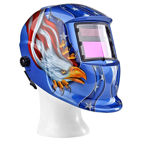 Flexzion Auto Darkening Welding Helmet Solar Powered Weld/Grind Selectable Mask Tool Blue Eagle Face Protector for Arc Tig Mig Grinding Plasma Cutting with Adjustable Shade Range 9-13