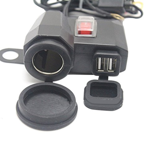 T Tocas 5v/3.1a Dual USB Ports Output Power Charger with Dc 12v Car Cigarette Lighter Socket, Special Mount for Motorcycle Mirror Clamp