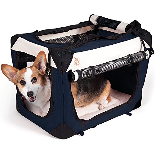 PetLuv "Happy Dog" Small Soft Sided Small Dog Crate & Carrier with Locking Zippers & Comfy Plush Sleep Pillow Roomy Interior Breezy Windows, Sunroof - Collapses, Folds, Lightweight Stylish, Washable