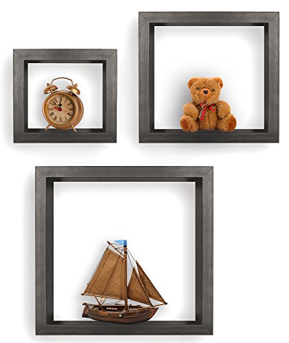 Greenco Set of 3 Floating Cube Shelves, Espresso Finish