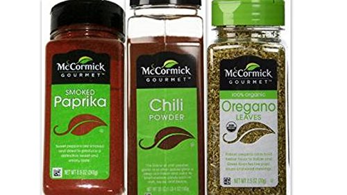 McCormick Gourmet Spices Bundle (Pack of 3) includes 1-Bottle Oregano Leaves, 2.5 oz + 1-Bottle Smoked Paprika, 8.5 oz + + 1-Bottle Chili Powder, 20 oz