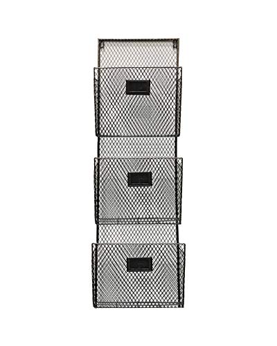 Three Tier Wall File Holder – Durable Black Metal Rack with Spacious Slots for Easy Organization, Mounts on Wall and Door for Office, Home, and Work – by Designstyles