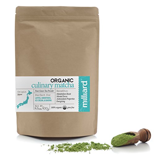 Milliard Organic Matcha Green Tea Powder (100g/3.5oz) Culinary Grade, GMO Free Japanese Energy Booster