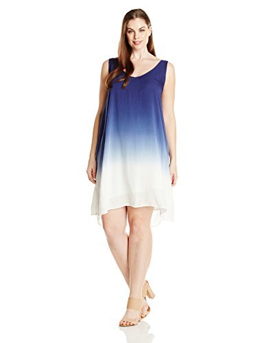 BB Dakota Women's Plus-Size Nixon Dip-Dye Rayon Dress, Blue, 3X
