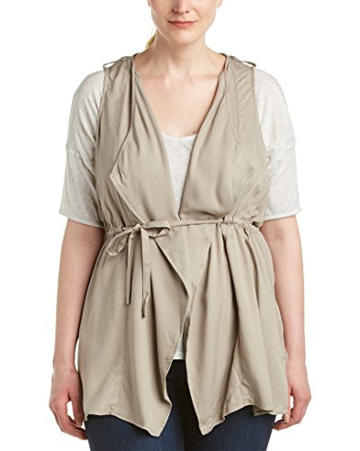 BB Dakota Women's Plus-Size Abaline Rayon Twill Utility Vest, Dark Khaki, 1X