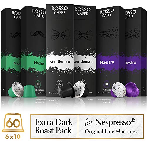 Rosso Coffee Capsules for Nespresso Original Machine - 60 Gourmet Espresso Pods Extra Dark Roast Pack, Compatible with Nespresso Original Line Machines