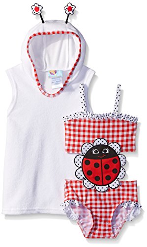 Baby Buns Girls' Lady Bug Terry Cover Up Swimwear Set