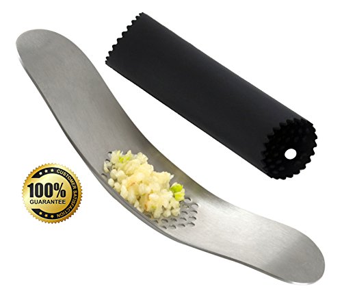 OMECORE Garlic Press Rocker Crusher Solid Stainless Steel Mincer with Silicone Peeler