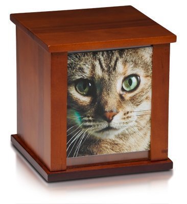 Pet Urn Peaceful Pet Memorial Keepsake Urn,Photo Box Pet Cremation Urn,Dog Urn,Cat Urn ,Small Animal Urn, Size,50 cu.in., Birch Wood,Color, Cherry