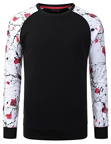 URBANCREWS Mens Hipster Hip Hop Rose Splatter Raglan Crewneck Sweatshirt Blk,XXL