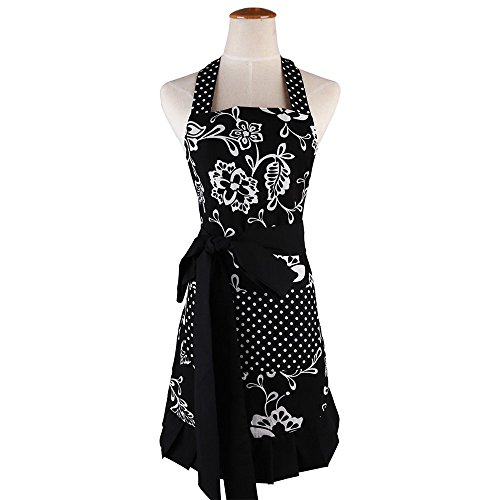 Apron for Women with Pockets, Extra Long Ties,Floral Apron, Perfect for Kitchen Cooking, Baking and Gardening, 29 x 21 - inch (Black)