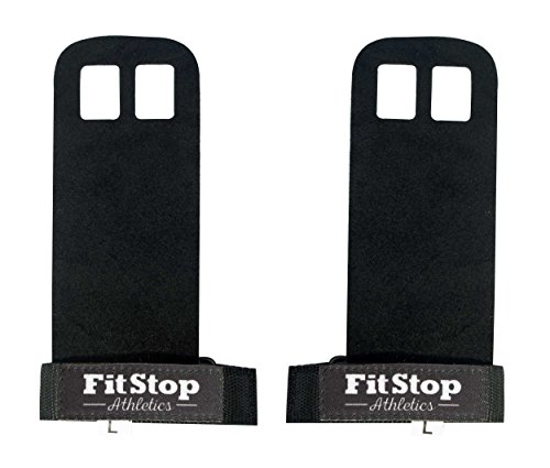 Leather Hand Grips / Bar Grips - Great gloves for Crossfit, Pullups, Chinups, Perfect Kettlebell workout gloves and Gymnastics (2 Wrist Wraps Included)