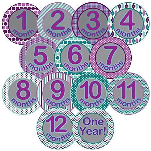 Monthly Belly Stickers for Baby Girl - Month 1-12 + Bonus One Year Sticker - 13 Pre-cut Vinyl Sticker Set - Perfect Shower Gift