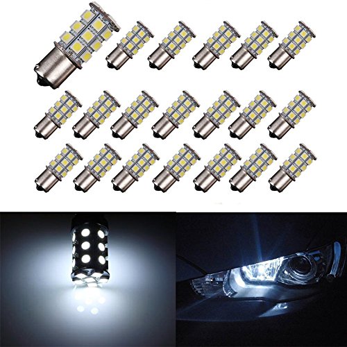 AUTOUS90 20-Pack 1156 1141 1003 27-SMD White LED Bulbs for Car Rear Turn Signal Lights Interior RV Camper