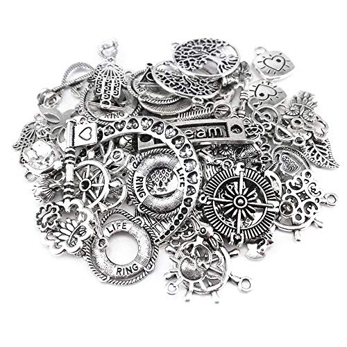 Yueton 100 Gram (Approx 80pcs) Assorted DIY Antique Charms Pendant for Crafting, Jewelry Making Accessory (Silver)