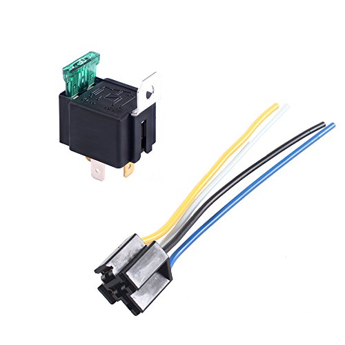 ESUPPORT 12V 30A Car Motor Heavy Duty Relay Socket Plug 4Pin Fuse On/Off SPST Wire Metal