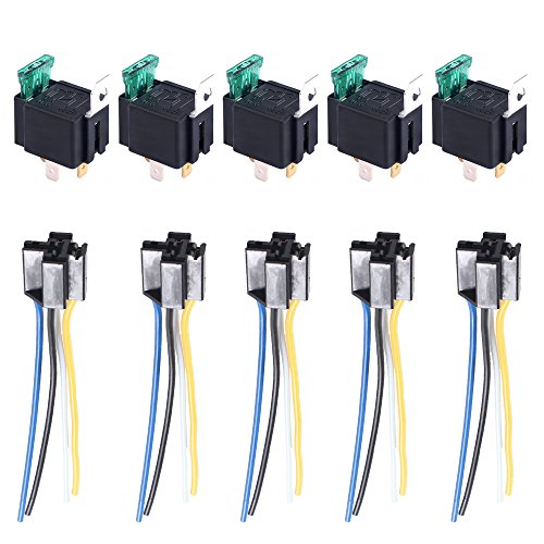 ESUPPORT 12V 30A Car Motor Heavy Duty Relay Socket Plug 4Pin Fuse On/Off SPST Wire Metal Pack of 5