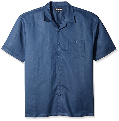 Stacy Adams Men's Big-Tall Linen Blend Solid Color Short Sleeve Shirt, Navy, 4X-Large
