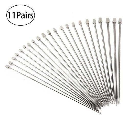 Pixnor Knitting Needles 11 Pairs - Stainless Steel, Straight, 14" in Sizes 2mm to 8mm