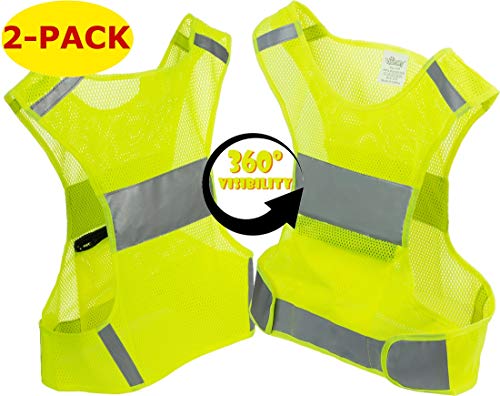 Reflective Vest for Running or Cycling (2-Pack) | Reflector Jackets with Pockets | High Visibility Safety Clothing for Bike, Walking, Runners | 5 Sizes