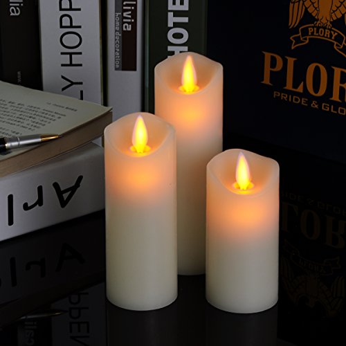 Calm-life Classic Pillar Real Wax Flameless LED Candles with Timer Feature Ivory Color - Set of 3