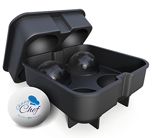 Silicone Ice Ball Maker Mold – Tray of 4 Round Shapes Silicone Large Ice Cube Balls 4x1.7 inch – Great for Parties Whiskey and all Cold Beverages Premium Bar Accessory - Chuzy Chef