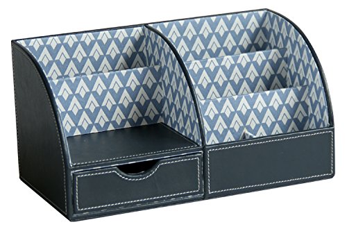 WOOSAL Decorative Tray Rectangular Alligator Leather Serving Tray with Handles for Bed/Sofa/Coach/Home/Hotel,Set of 2 (Grey Blue) (Brown-d)