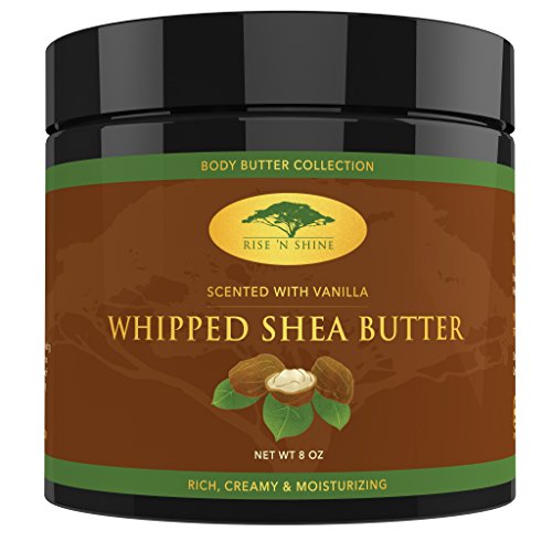 Vanilla Whipped African Shea Butter Cream - Pure 100% Raw All Natural Organic Moisture for Soft Skin and Natural Hair - Body Butter Improves Blemishes Stretch Marks Scars Wrinkles & Eczema (8 oz)