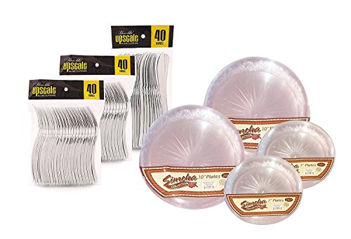 Party Bargains Heavyweight Clear Salad and Dinner Plates, Plastic Silverware Combo Pack, 200 Piece Party Set.