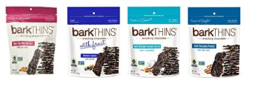 BarkTHINS Snacking Dark Chocolate Variety Pack, 1-Toasted Coconut Almonds, 1- Blueberry Quinoa, 1- Pretzel , 1- Almond, 4.7 Ounce each (Pack of 4)