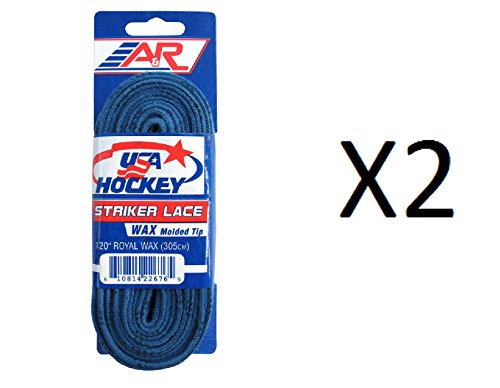 A&R New 2 Pk USA Hockey Striker Waxed Molded Tip Skate Laces Royal Blue 72"-120"