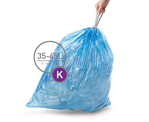 simplehuman Code K Custom Fit Recycling Trash Can Liner, 12 refill packs (240 Count), 35-45 Liter / 9-12 Gallon