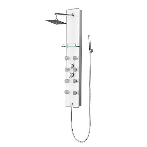 51" White Aluminum Safety Tempered Glass Rainfall Shower Panel Rain Massage System Faucet with Jets & Hand Shower